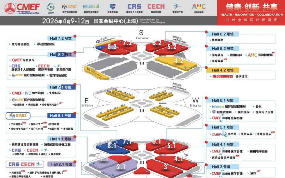 本次展览内容将覆盖上游原材料、核心零部件、设计制造、技术解决方案,中游医学影像、体外诊断、手术室、医用电子、智慧医疗、康复养老等核心领域,以及下游医疗服务、渠道流通与健康管理等多个环节,全面呈现医疗健康产业的创新生态和发展脉络。